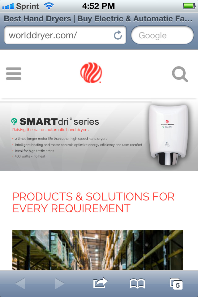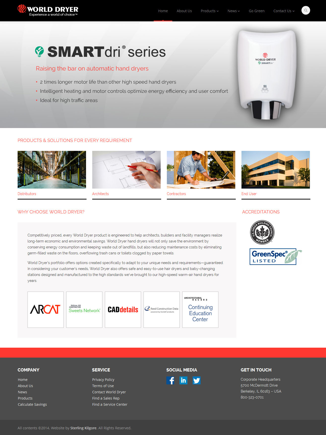 Case Study: World Dryer, headquartered in Berkeley, IL, needed to update the appearance of their site and to make it mobile friendly. It was decided to use an existing wordpress theme so the client could make basic content edits to the site going forward. My task was to locate a theme that closely resembled the World Dryer brand standards, and then tweak that to suit their needs.