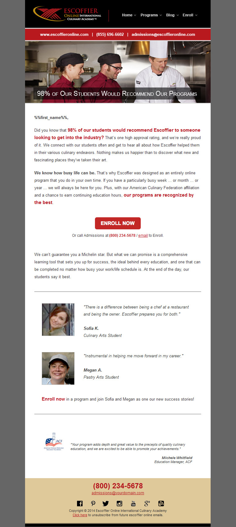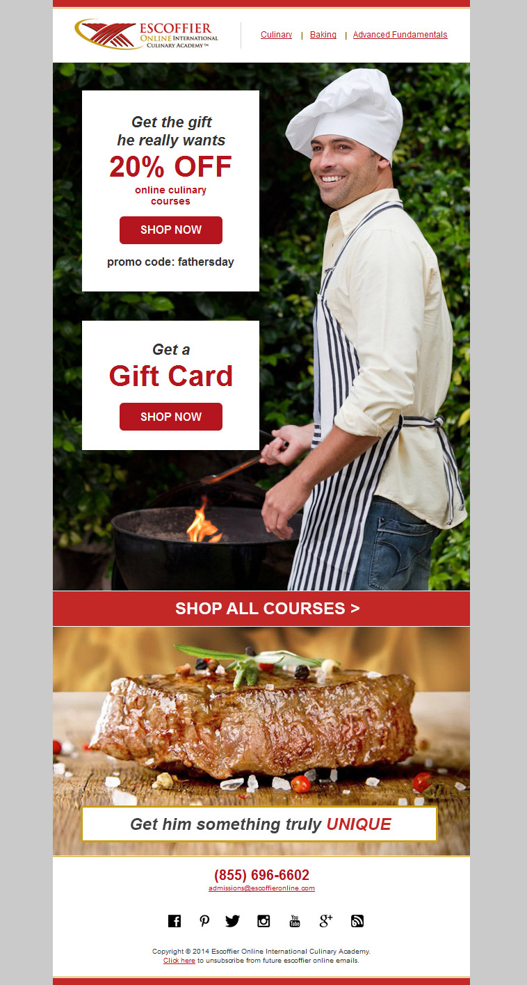 Case Study: Triumph Higher Education required a Father's Day email to advertise their online cooking classes.